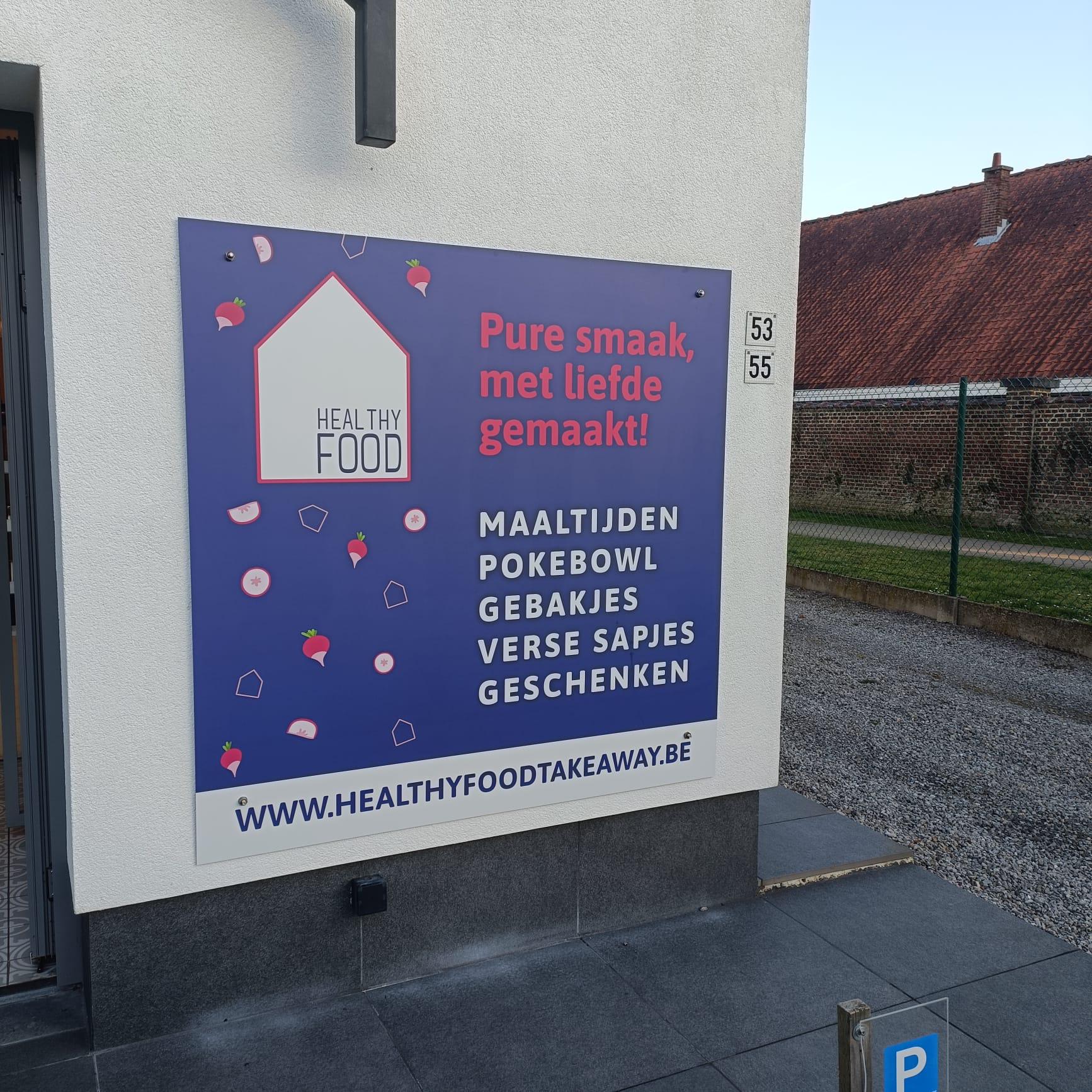 Voor de nieuwe branding van Healthy Food ontwierp ik een opvallend reclamepaneel dat perfect aansluit bij de vernieuwde huisstijl. Het ontwerp combineert frisse kleuren, duidelijke typografie en herkenbare beeldtaal, waardoor het meteen de aandacht trekt van voorbijgangers.
